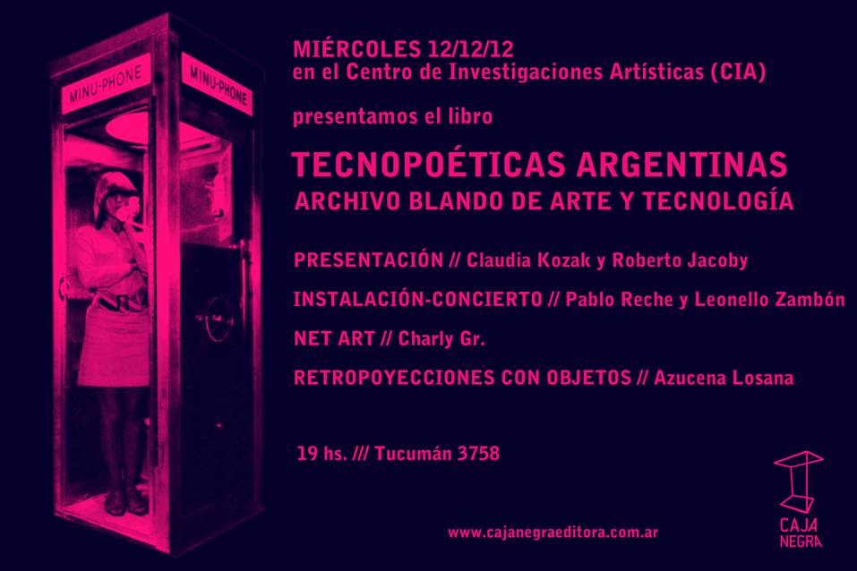 PRESENTACIÓN DE TECNOPOÉTICAS ARGENTINAS. ARCHIVO BLANDO DE ARTE Y TECNOLOGÍA. 12-12-12 19HS EN CIA - TUCUMÁN 3758 - CABA