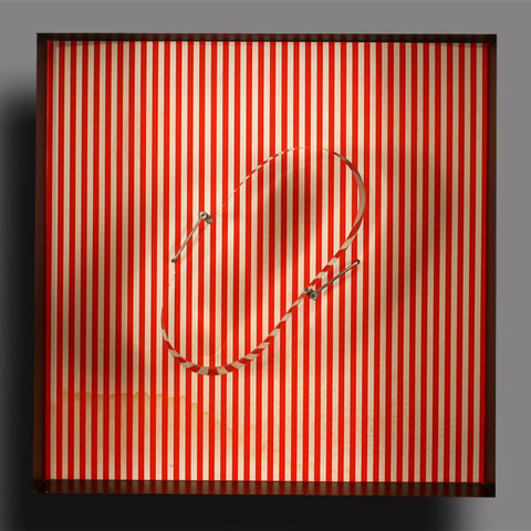 Espejo en vibración que es una placa de metal pulido de 200 x 50 cm. Cuando se pulsa un interruptor, un motor le imprime un movimiento que la hace alternativamente cóncava y convexa, de manera que el reflejo del espectador se achica y se agranda sucesivamente, lo cual provoca risa. Estos elementos y otros parecidos fueron utilizados de diversas maneras en las