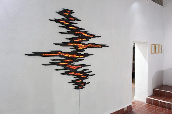 En otras obras como Fisuras térmicas (2015-2016) y Acción latente (2016), el artista trabaja con madera carbonizada y resina de araucaria para construir unas figuras abstractas que se extienden por los muros del espacio expositivo, iluminadas por luces LED. Acción latente se dispone en tres paredes de una sala oscura y las luces son controladas por un efecto de fade. Los ritmos lumínicos alternan de manera gradual el encendido y apagado, remitiendo simultáneamente a la cadencia de la respiración del ser humano y de la tierra.